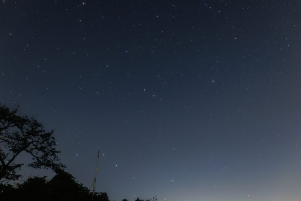 東展望台と頂上展望台の間の場所から北の空を撮影。下の方に北斗七星、中央右寄りの星が北極星です。