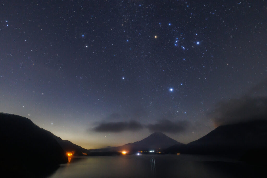 本栖湖と河口湖の星空 冬のダイヤモンド